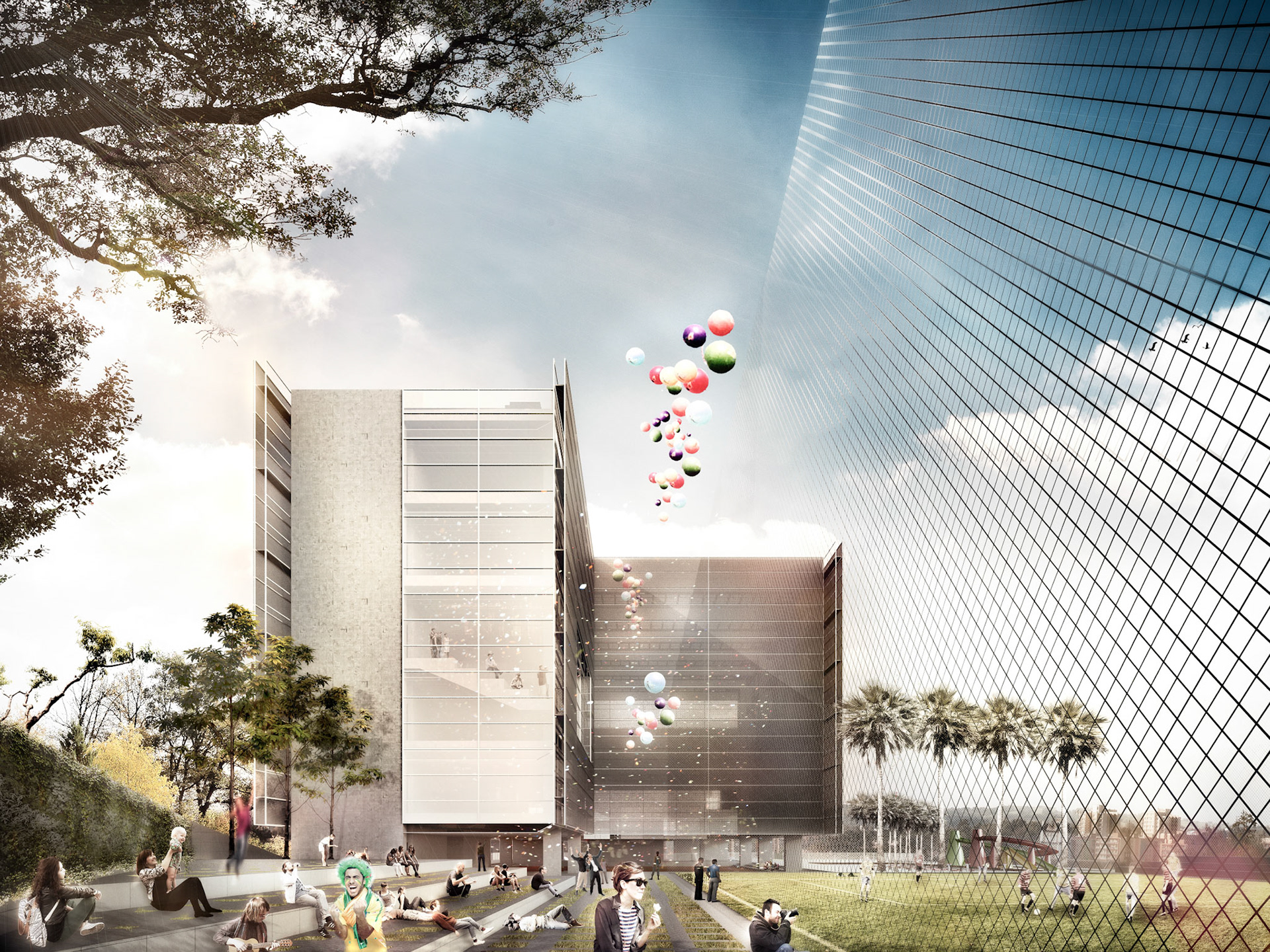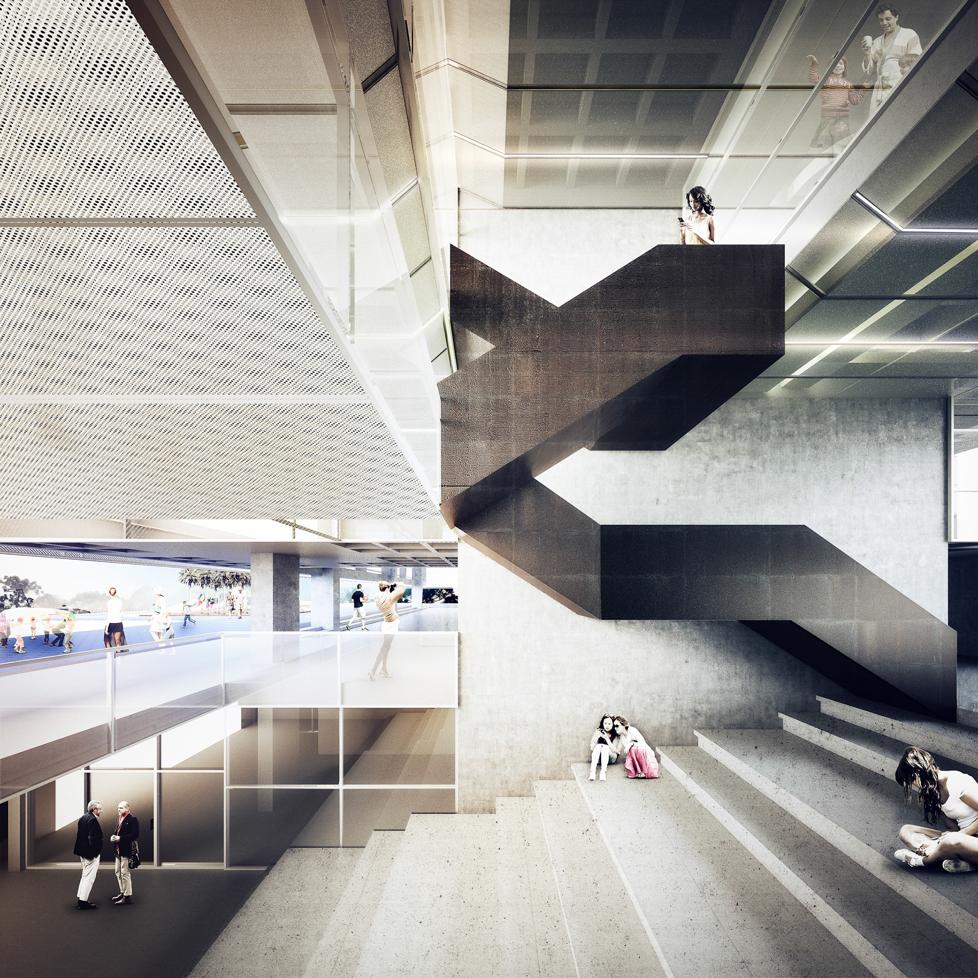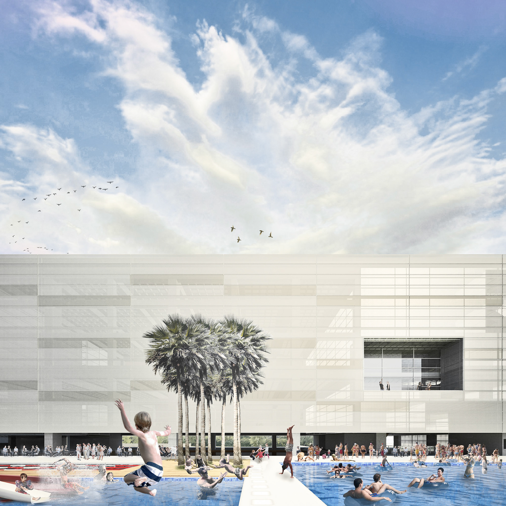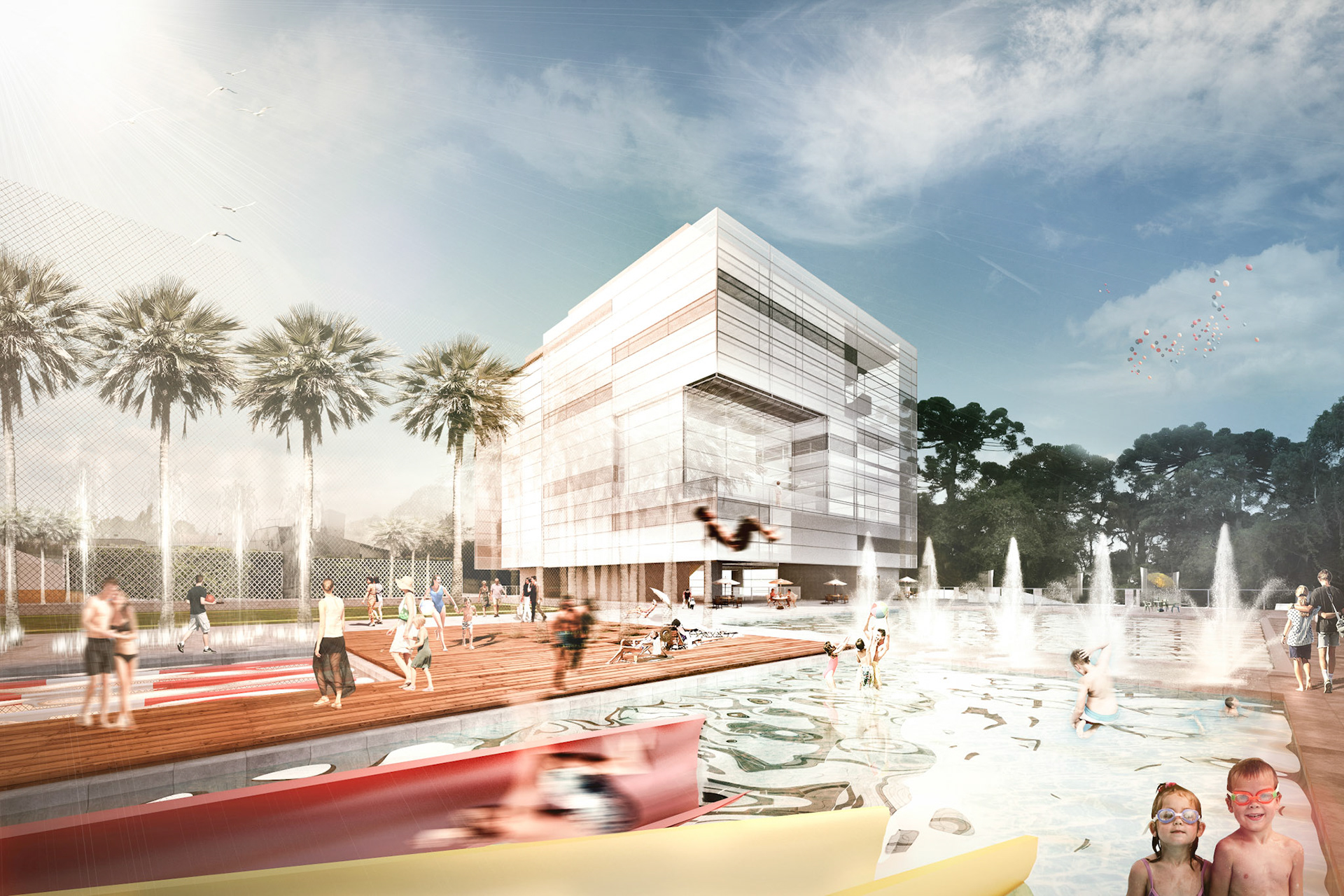 1ere position Proposition gagnante d’un concours fermé où trente bureaux les plus prestigieux de Curitiba ont participé. Situé dans un terrain avec un site classé et dans une zone non appropriée a la construction, ce projet a été un défi du début à la fin. L’édifice a pour concept principal les connexions, soit internes soit externes. Le Club Curitibano est le plus traditionnel de la ville, raison pour laquelle il devrait avoir cette communication avec son entourage. Ce concept allié aux solutions actuelles de confort environnemental a résulté à l’utilisation d’une façade complètement perméable, qui permettait le maximum de visibilité et qui en même temps protégeait l’édifice de l’incidence solaire. La façade choisie a été un système ventilé textile qui a permis un volume unique, créant une unité de grand impact visuel. ArchDaily - https://www.archdaily.com.br/br/626215/primeiro-lugar-no-concurso-para-nova-sede-do-clube-curitibano-arqbox-arquitetura