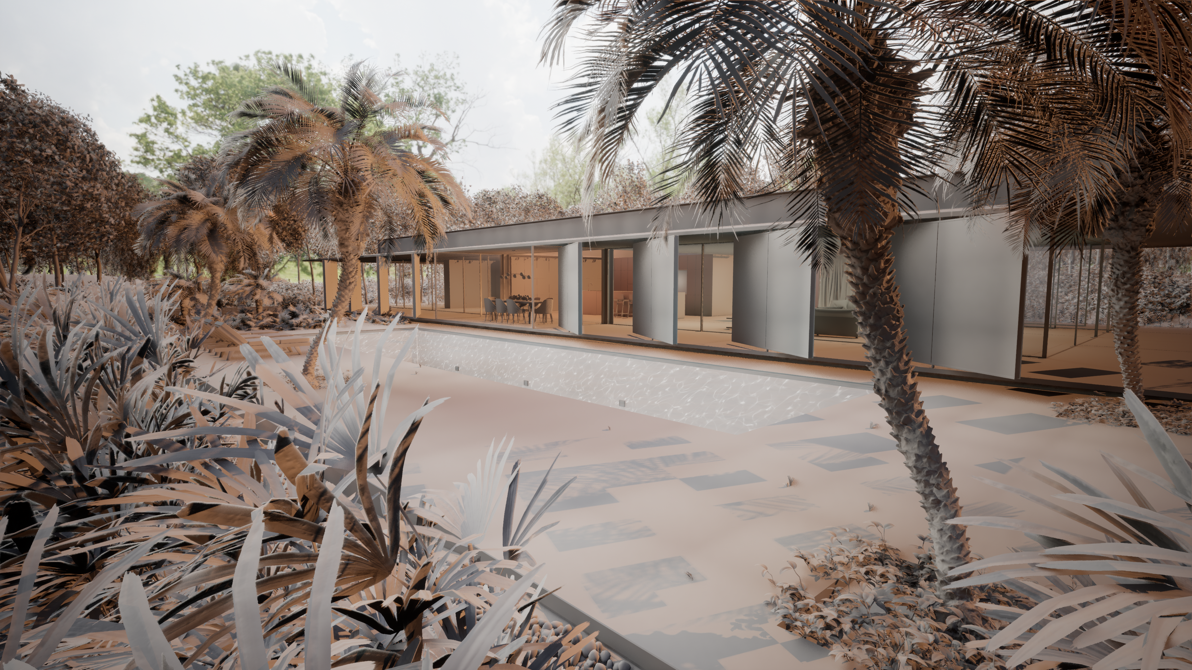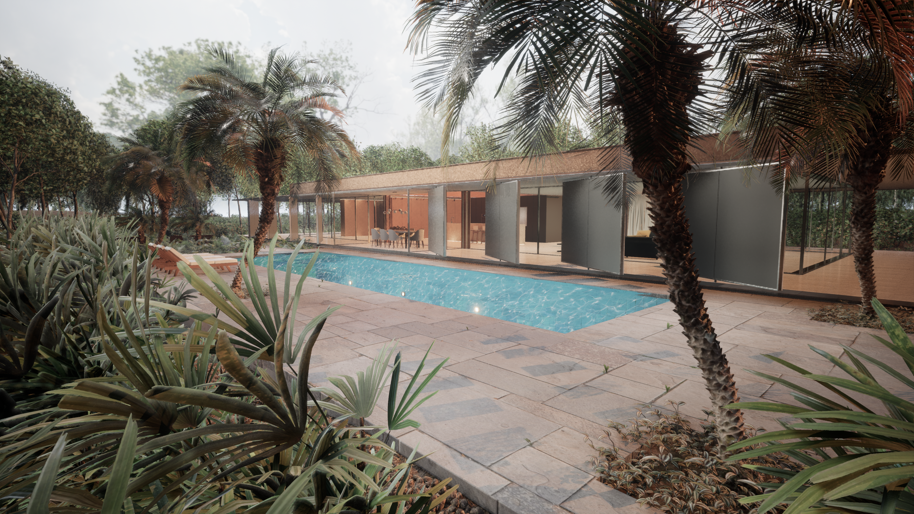 The meticulously crafted 3D house meshes were created using 3ds Max, ensuring precise attention to detail. To enhance the visual aesthetics, high-quality materials from Megascans were employed, adding a touch of realism to every element. The outdoor scenery and furniture content, skillfully curated by Dviz, further complement the overall design.